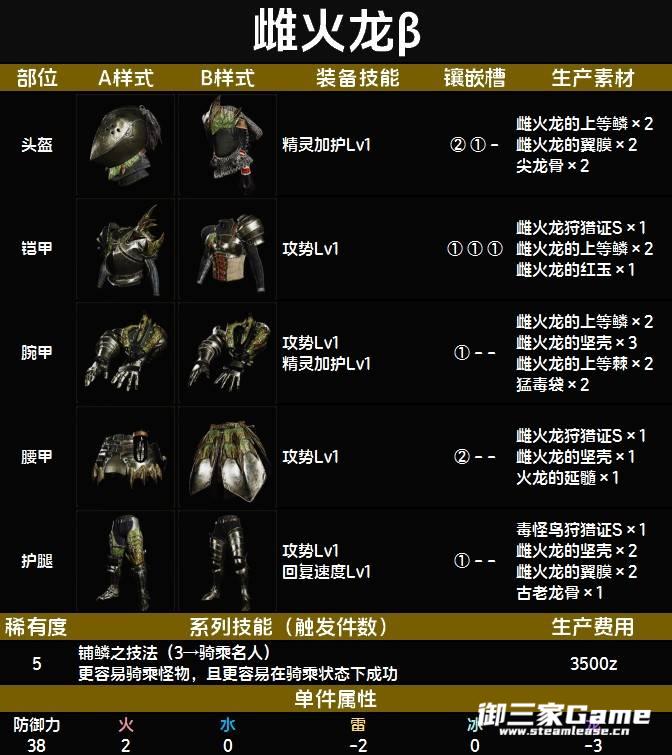 《怪物猎人荒野》中的雌火龙β套装是一套R5防具,拥有较多的技能珠孔位,可以搭配各种技能。下面为大家带来《怪物猎人荒野》雌火龙β套装图鉴,希望对大家有用。