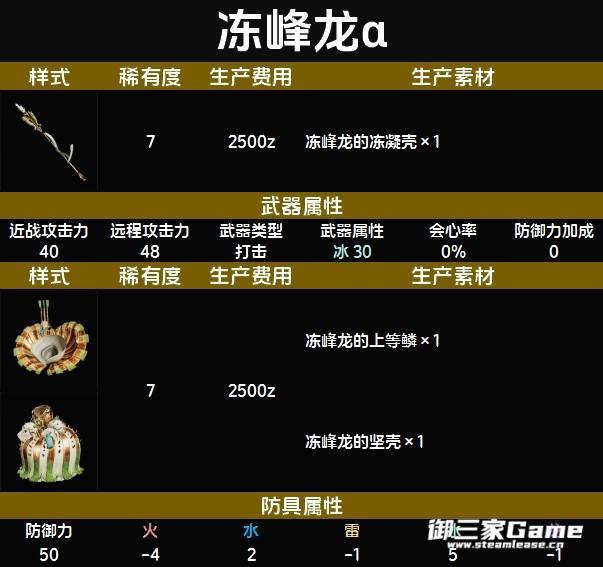 《怪物猎人荒野》中随从猫的冻峰龙α套装是一套稀有度7的防具,下面为大家带来《怪物猎人荒野》随从猫冻峰龙α套装图鉴,包含套装数据与制作材料,一起来看看吧。