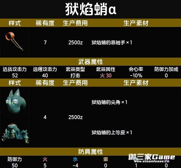 《怪物猎人荒野》中随从猫的狱焰蛸α套装是一套稀有度7的防具,下面为大家带来《怪物猎人荒野》随从猫狱焰蛸α套装图鉴,包含套装数据与制作材料,一起来看看吧。
