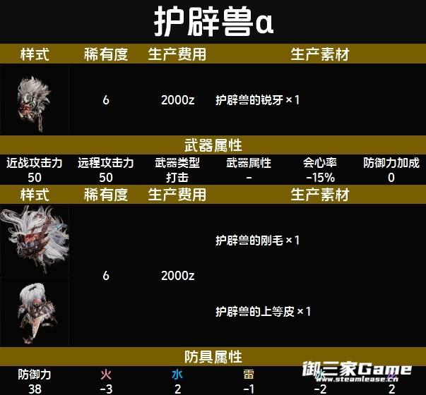 《怪物猎人荒野》中随从猫的护辟兽α套装是一套稀有度6的防具,下面为大家带来《怪物猎人荒野》随从猫护辟兽α套装图鉴,包含套装数据与制作材料,一起来看看吧。