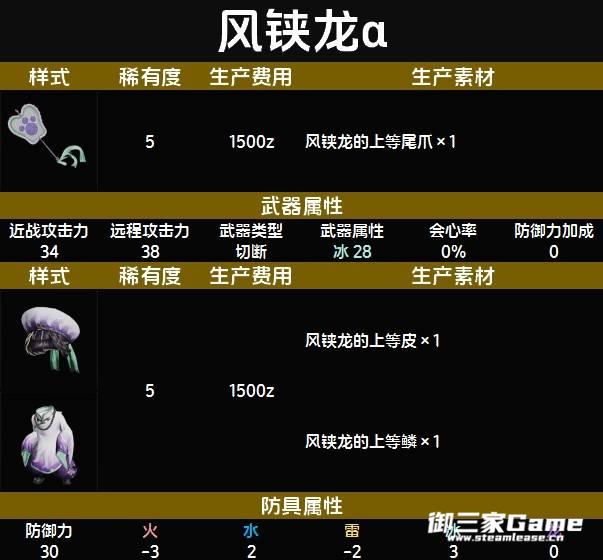 《怪物猎人荒野》中随从猫的风铗龙α套装是一套稀有度5的防具,下面为大家带来《怪物猎人荒野》随从猫风铗龙α套装图鉴,包含套装数据与制作材料,一起来看看吧。