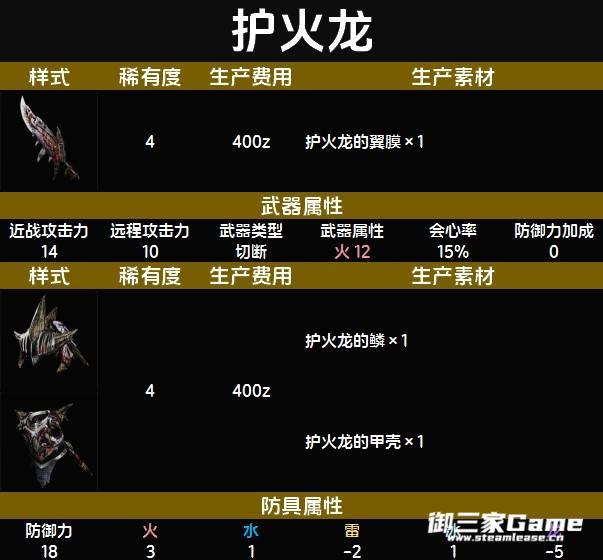 《怪物猎人荒野》中随从猫的护火龙套装是一套稀有度4的防具,下面为大家带来《怪物猎人荒野》随从猫护火龙套装图鉴,包含套装数据与制作材料,一起来看看吧。