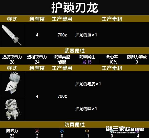 《怪物猎人荒野》中随从猫的护锁刃龙套装是一套稀有度4的防具,下面为大家带来《怪物猎人荒野》随从猫护锁刃龙套装图鉴,包含套装数据与制作材料,一起来看看吧。