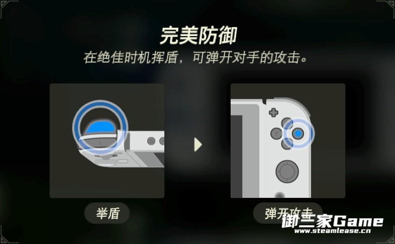 盾反:按下ZL进入防御状态,被敌人攻击的瞬间按下A,触发盾反,几乎不消耗耐久,不会受到伤害,还能使敌人陷入僵直。