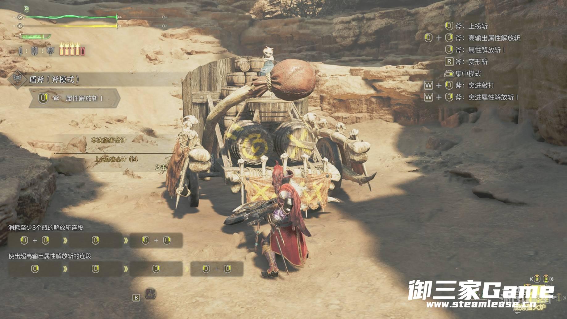 翻滚:拿出武器通过空格(键鼠)、A(XBOX)或X(PS)进行翻滚,可通过短暂的无敌帧躲避怪物某些招式,但距离较劲。