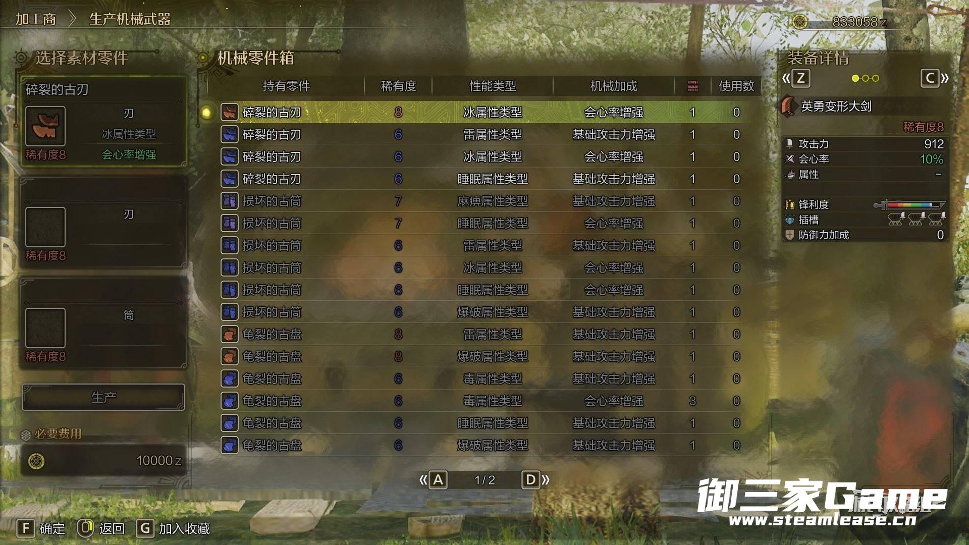 机械武器指组合三个相同稀有度的机械零件来生产的武器,所需的零件会因武器种类而异。生产时需注意零件的性能类型和机械加成。机械武器的属性将根据所选零件中占比最高的性能类型来决定。在通关后可以继续狩猎强力的怪物,收集零件,打造属于自己的独特而强大的武器吧。