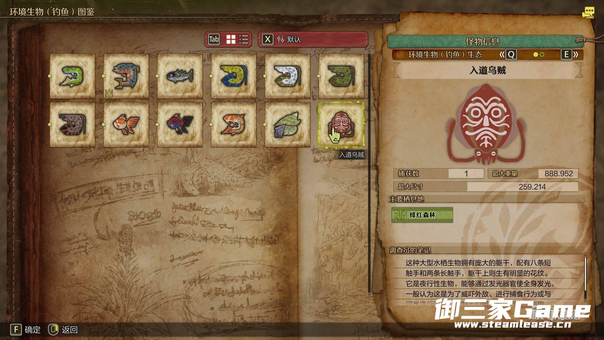 本作中除了普通的环境生物之外,还加入了通过钓鱼捕获的环境生物,通关后可以继续解锁所有环境生物图鉴。