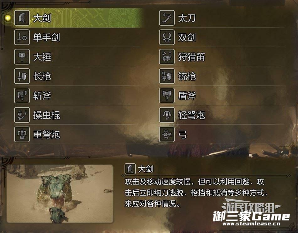 如果对其他武器感兴趣的话,也可以尝试不同的武器流派来狩猎,挑战14种武器全部掌握也是乐趣之一。
