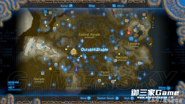 马厩就在link出生不远的地方,如下地图所示,马厩门口有个带着帽子的老人,让你去找白马。