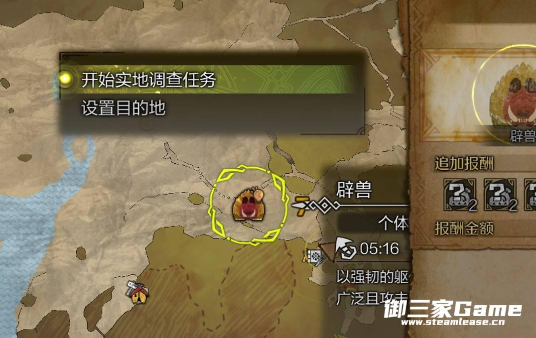 当连结队长选择同意时,就可以开始对目标怪物的实地调查任务。