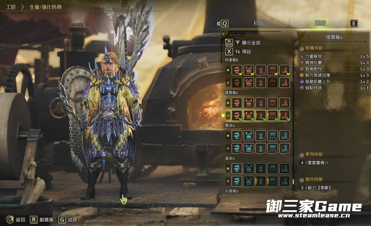 《怪物猎人荒野》历战王煌雷龙活动任务可以解锁新的煌雷龙γ套装,那么新装备有着什么样的技能与孔位呢?下面为大家带来《怪物猎人荒野》历战王煌雷龙套装图鉴,一起来看看吧。
