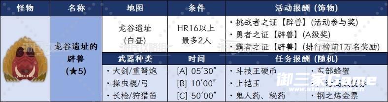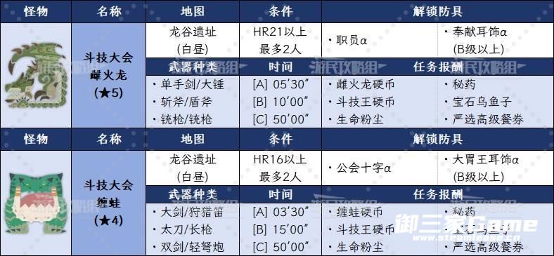 解锁条件:完成【斗技大会雌火龙】并获得B级以上评价