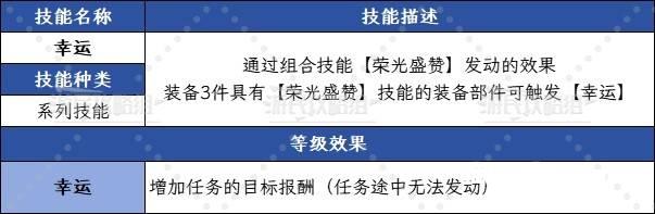 幸运是通过组合技能【荣光盛赞】触发的技能效果,需要装备3件带有荣光盛赞技能的装备。