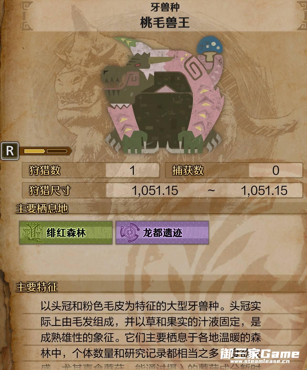 《怪物猎人荒野》桃毛兽王是一种大型怪物,还有玩家不清楚桃毛兽王的主要栖息地与特征,下面请看为大家带来的《怪物猎人荒野》桃毛兽王怪物介绍,希望对大家有所帮助。
