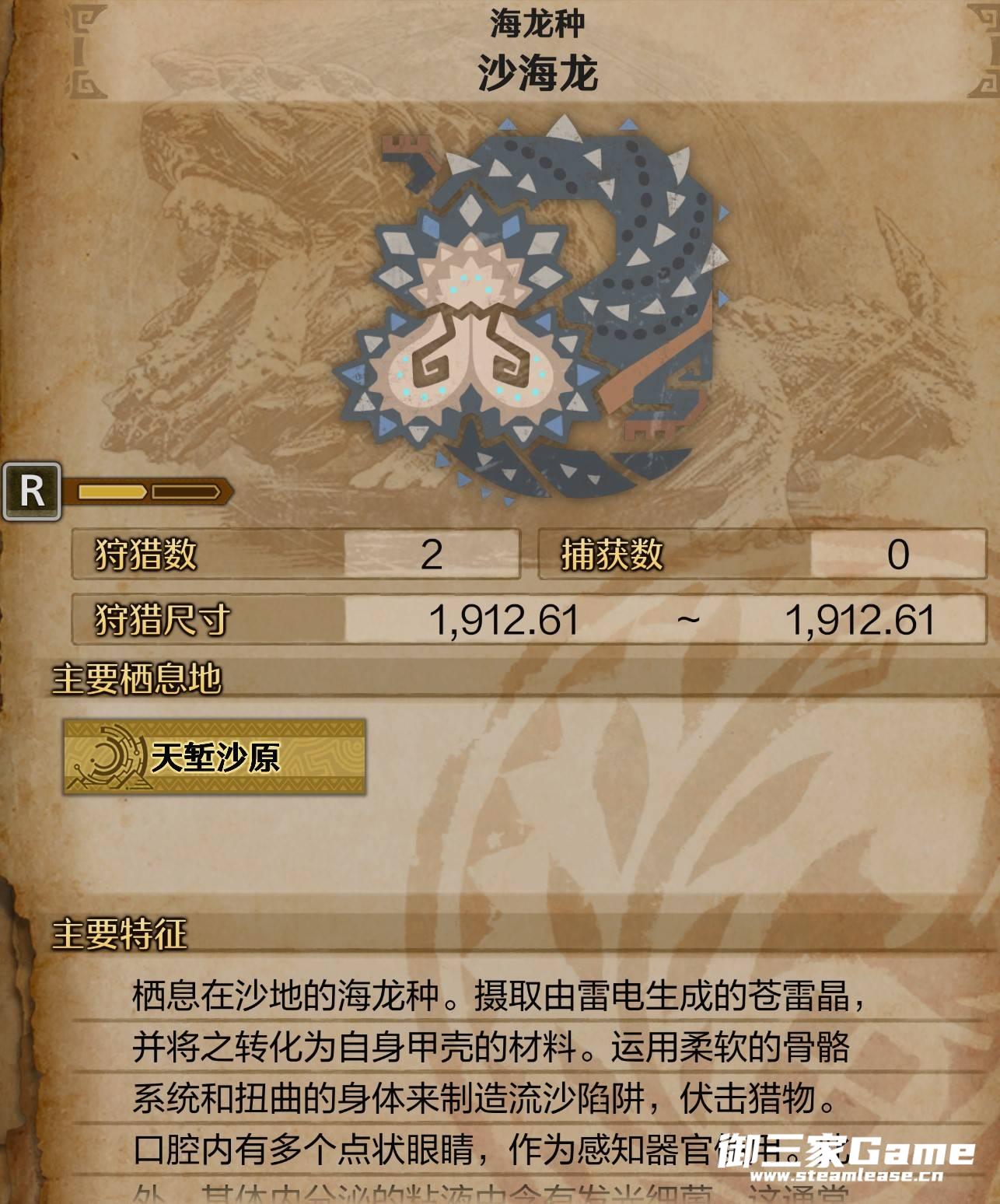 《怪物猎人荒野》中有着不同种类的怪物,还有玩家不清楚沙海龙的特征都有哪些,下面请看为大家带来的《怪物猎人荒野》沙海龙怪物介绍,希望能够帮助到大家。