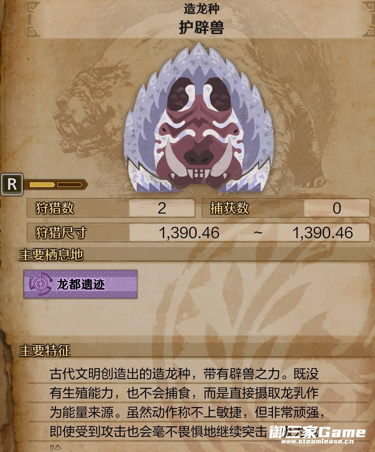 《怪物猎人荒野》中有一部分怪物诞生于古代文明,护辟兽就是其中之一,那么护辟兽的主要栖息地与特征都有哪些呢?下面为大家带来《怪物猎人荒野》护辟兽怪物介绍,一起来看看吧。