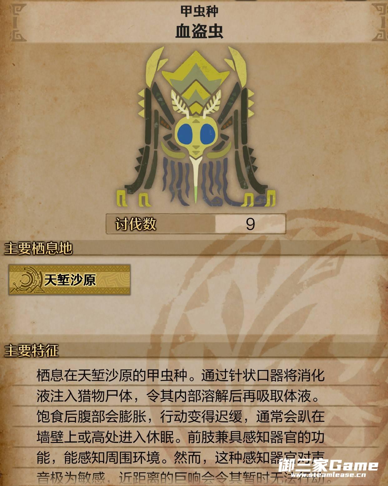 《怪物猎人荒野》血盗虫是游戏内的一种小型怪物,那么血盗虫的栖息地在哪里,又有哪些特征呢?下面为大家带来《怪物猎人荒野》血盗虫怪物介绍,希望可以帮助到大家。