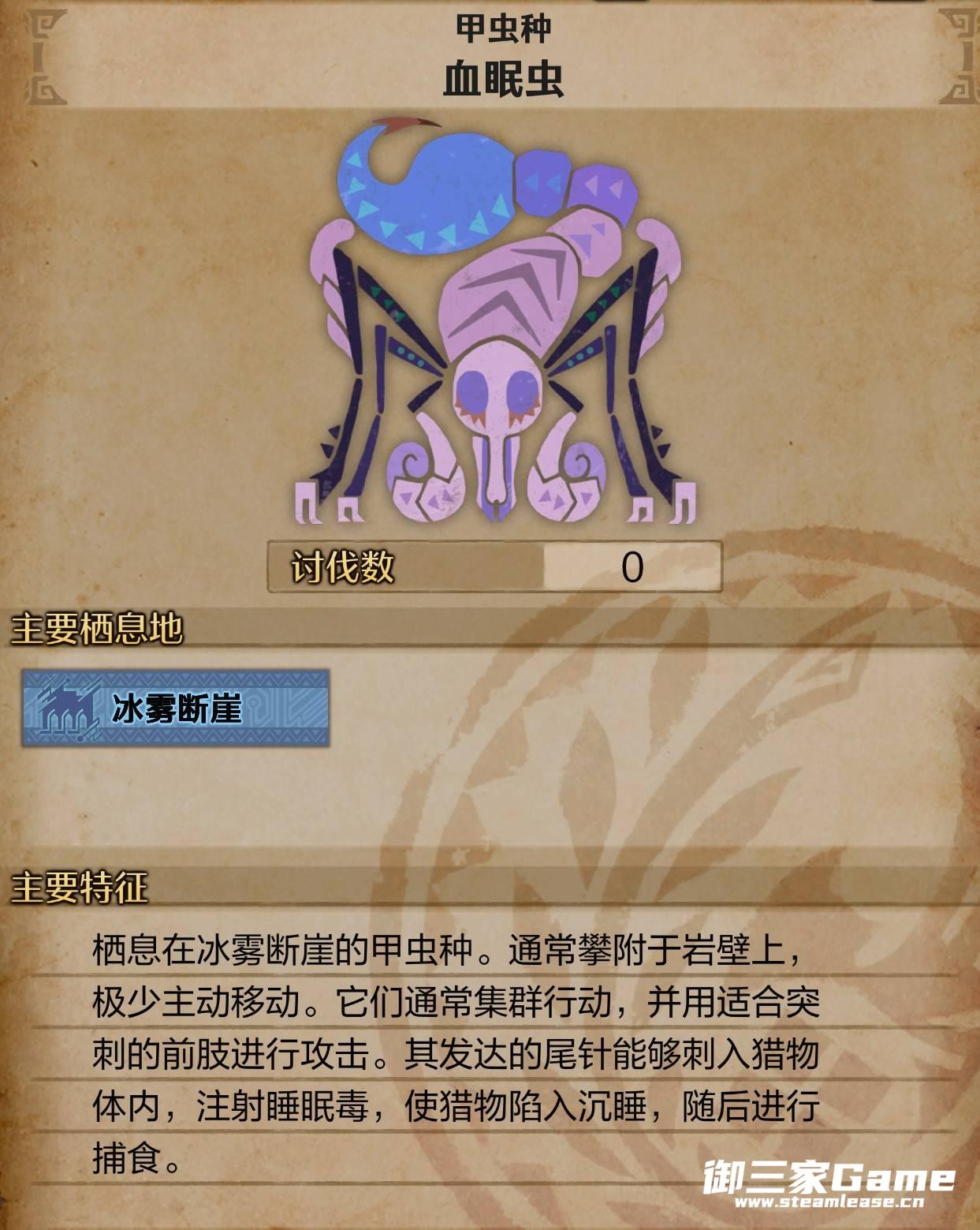 《怪物猎人荒野》血眠虫是一种小型怪物,还不清楚血眠虫主要栖息地与特征的小伙伴下面请看《怪物猎人荒野》血眠虫怪物介绍,希望可以帮助到大家。