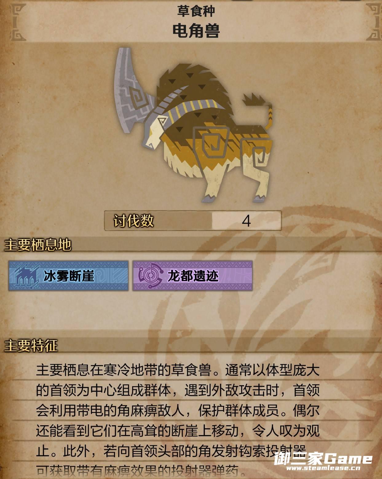 《怪物猎人荒野》中有非常多的小型怪物,电角兽就是其中之一,那么电角兽的主要栖息地与特征都有哪些呢?下面为大家带来《怪物猎人荒野》电角兽怪物介绍,一起来看看吧。