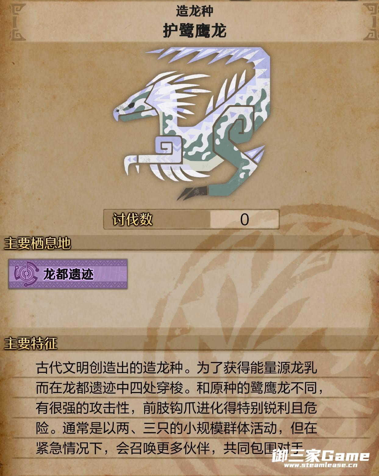 《怪物猎人荒野》中护鹭鹰龙的主要栖息地与特征都有哪些呢?还不清楚的小伙伴下面请看为大家带来的《怪物猎人荒野》护鹭鹰龙怪物介绍,希望能够帮助到大家。