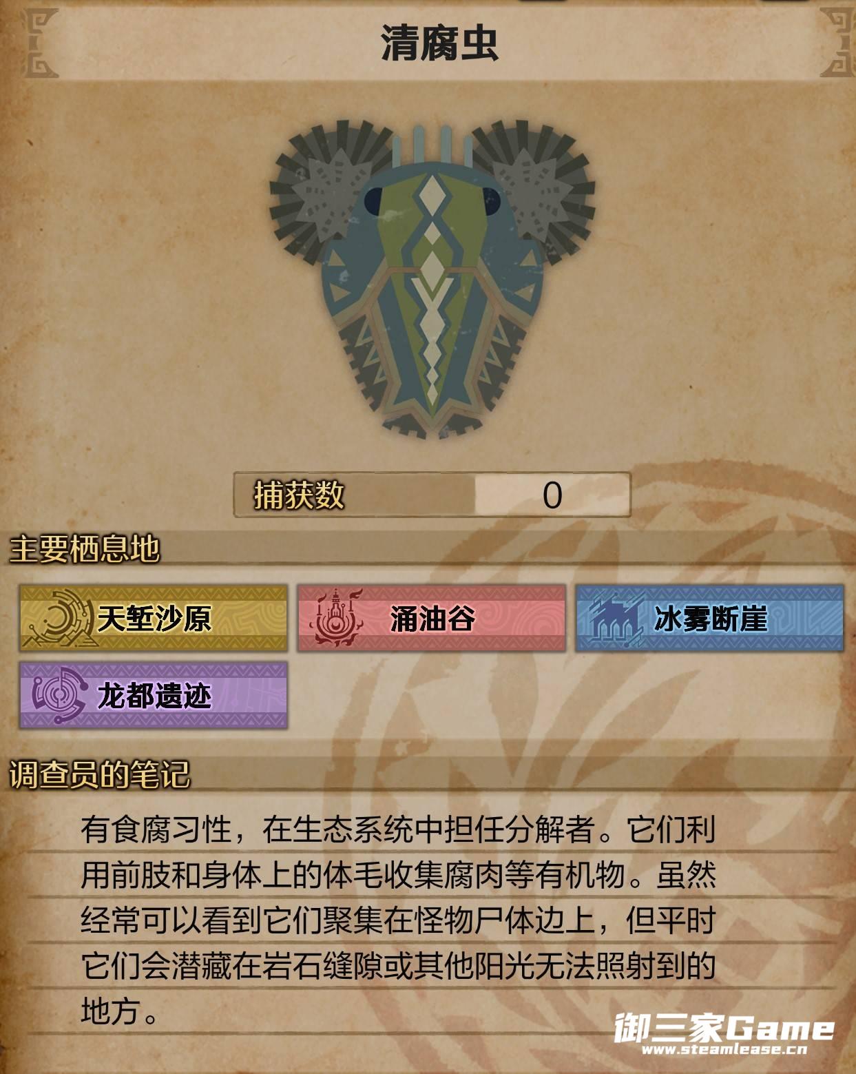 《怪物猎人荒野》清腐虫在生态系统中有着非常重要的作用,那么该生物的主要栖息地在哪里呢?下面请看《怪物猎人荒野》清腐虫生物介绍,希望可以帮助到大家。