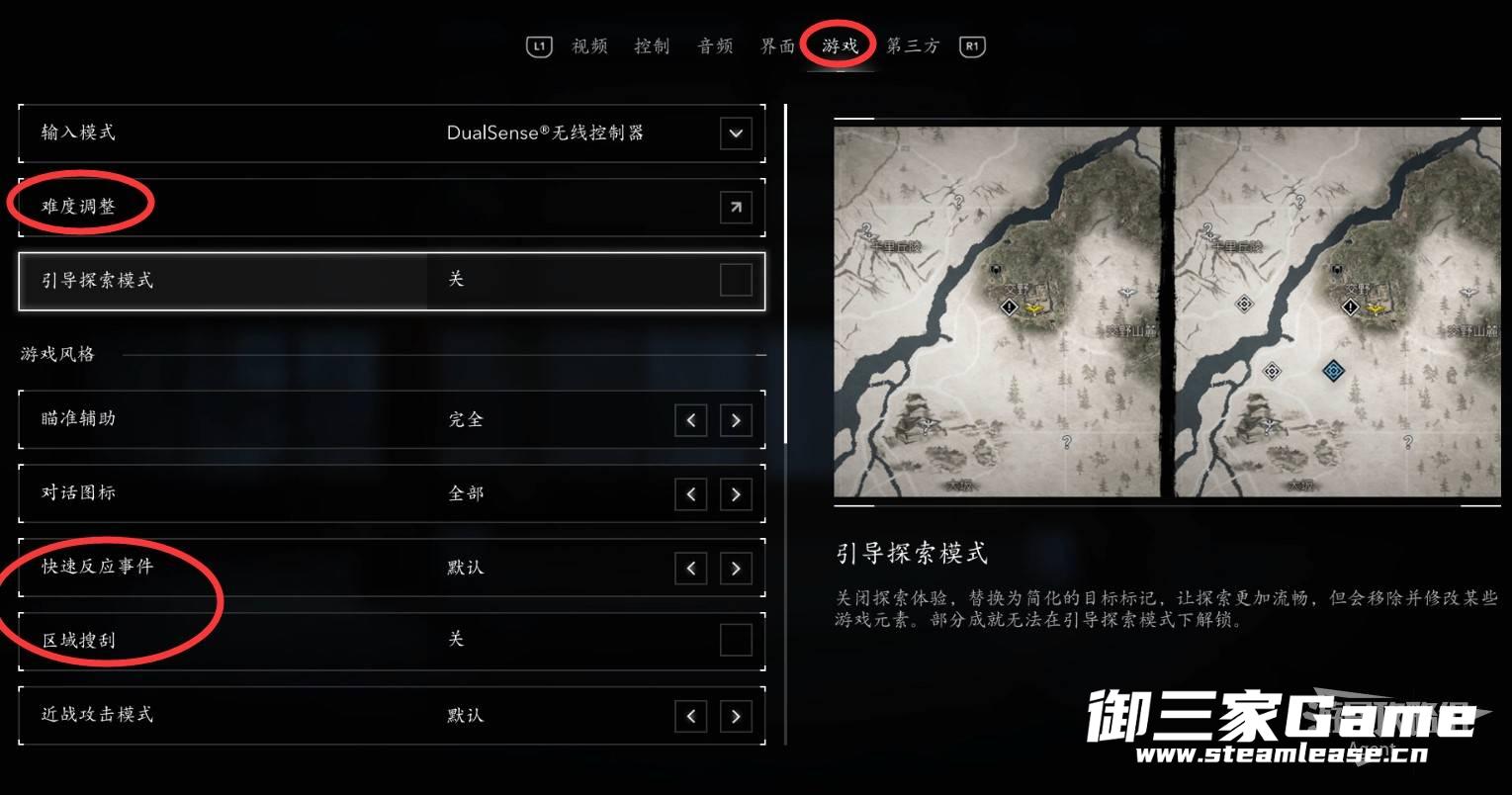 引导探索:开启后,所有任务目标会直接标注在地图上,比较省心。在游戏初期你可以关闭一段时间体验一下没有引导的样子,但是一直自己探索会很烦很鸡肋,迟早还是得开启的。