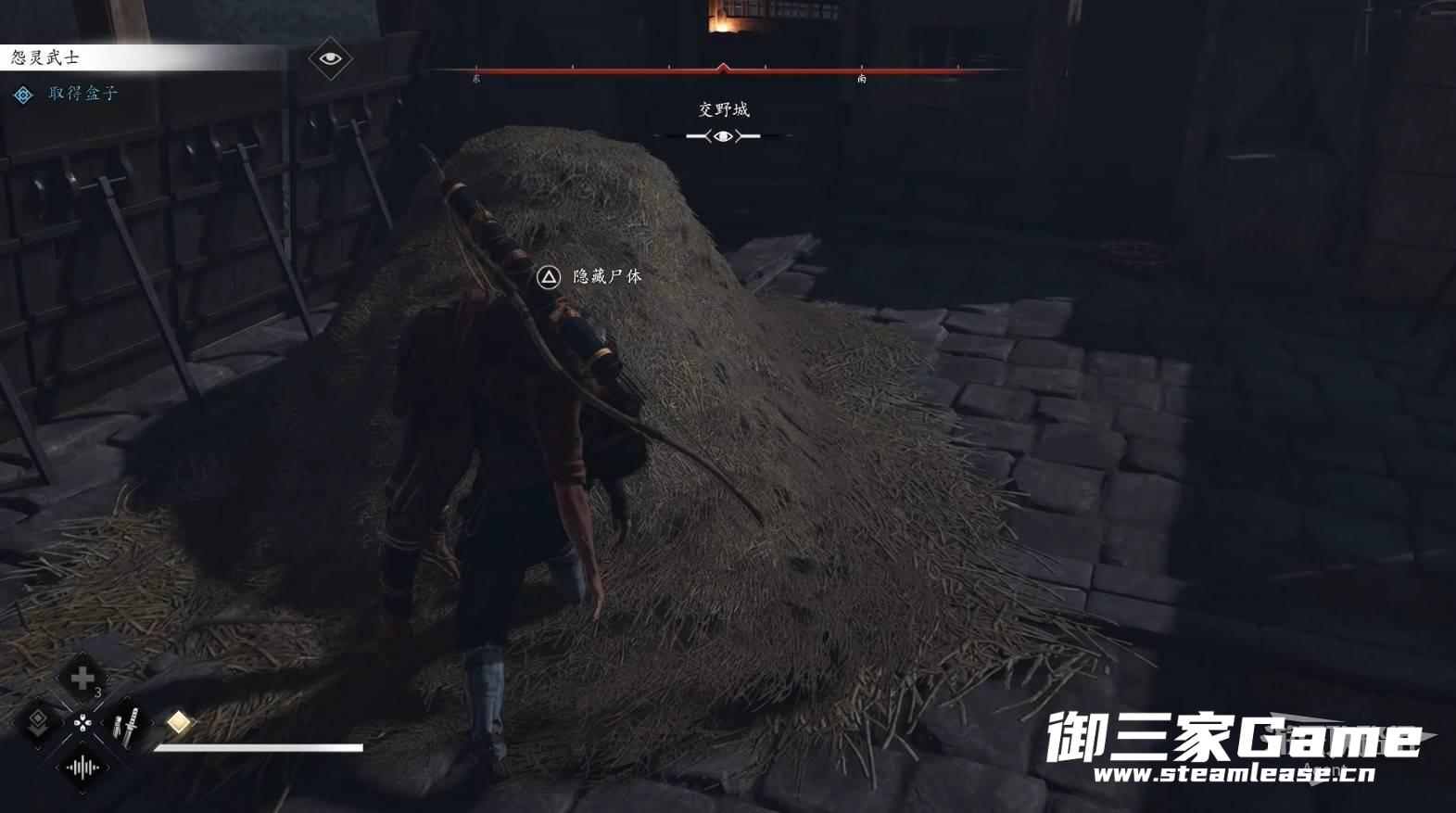 刺杀敌人后,可将尸体扔进草堆里隐藏。