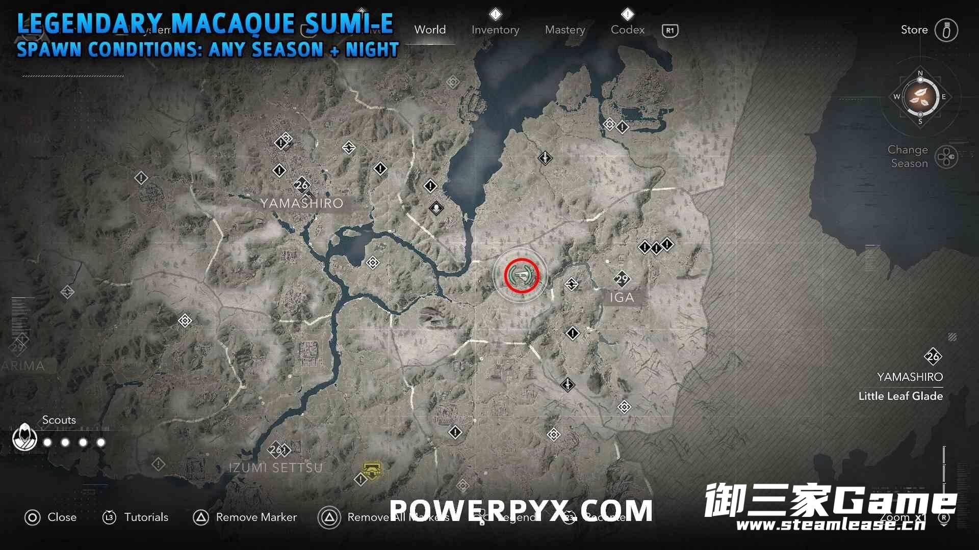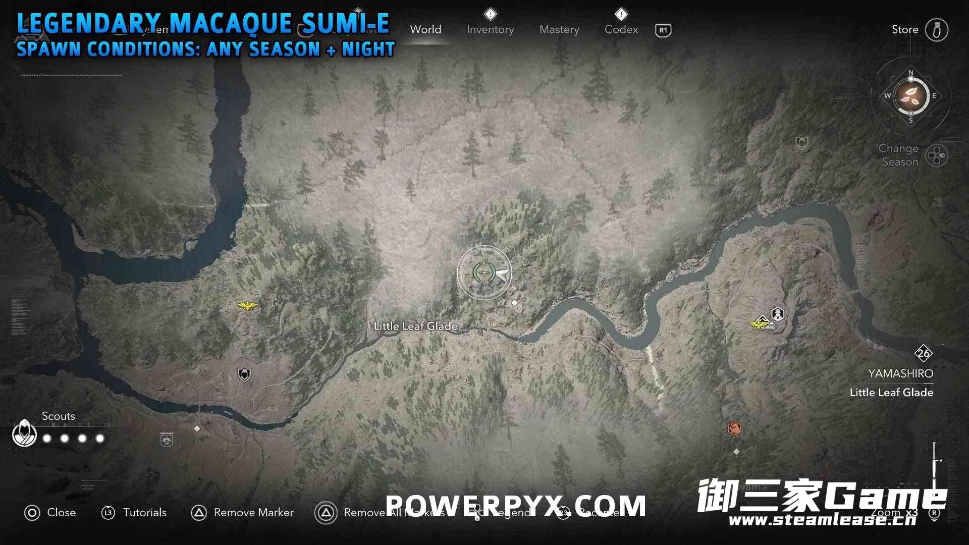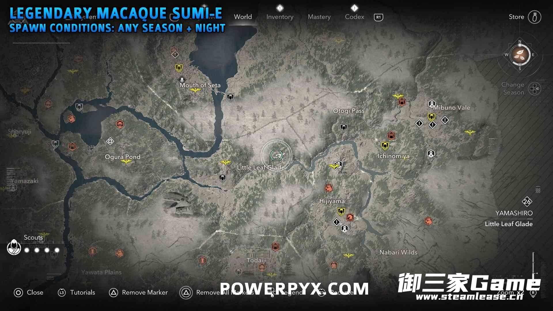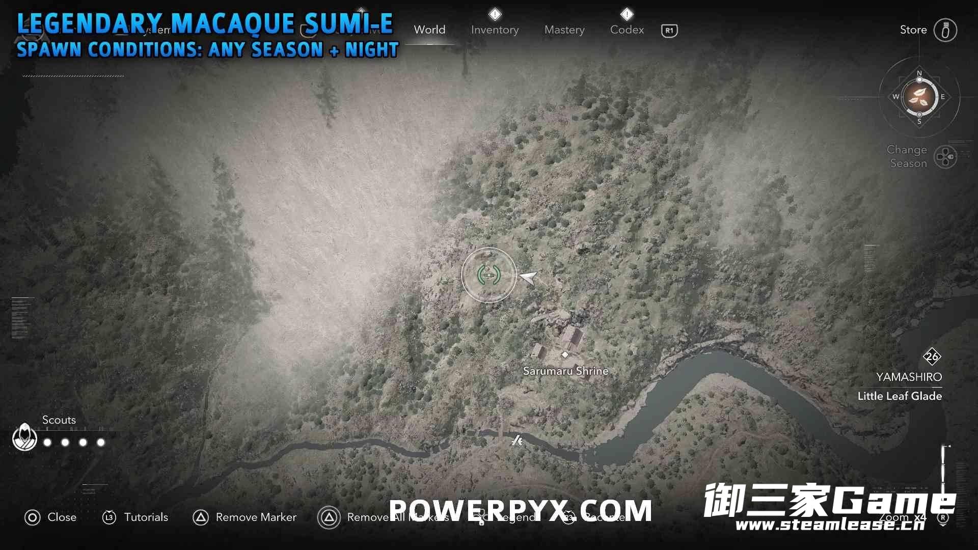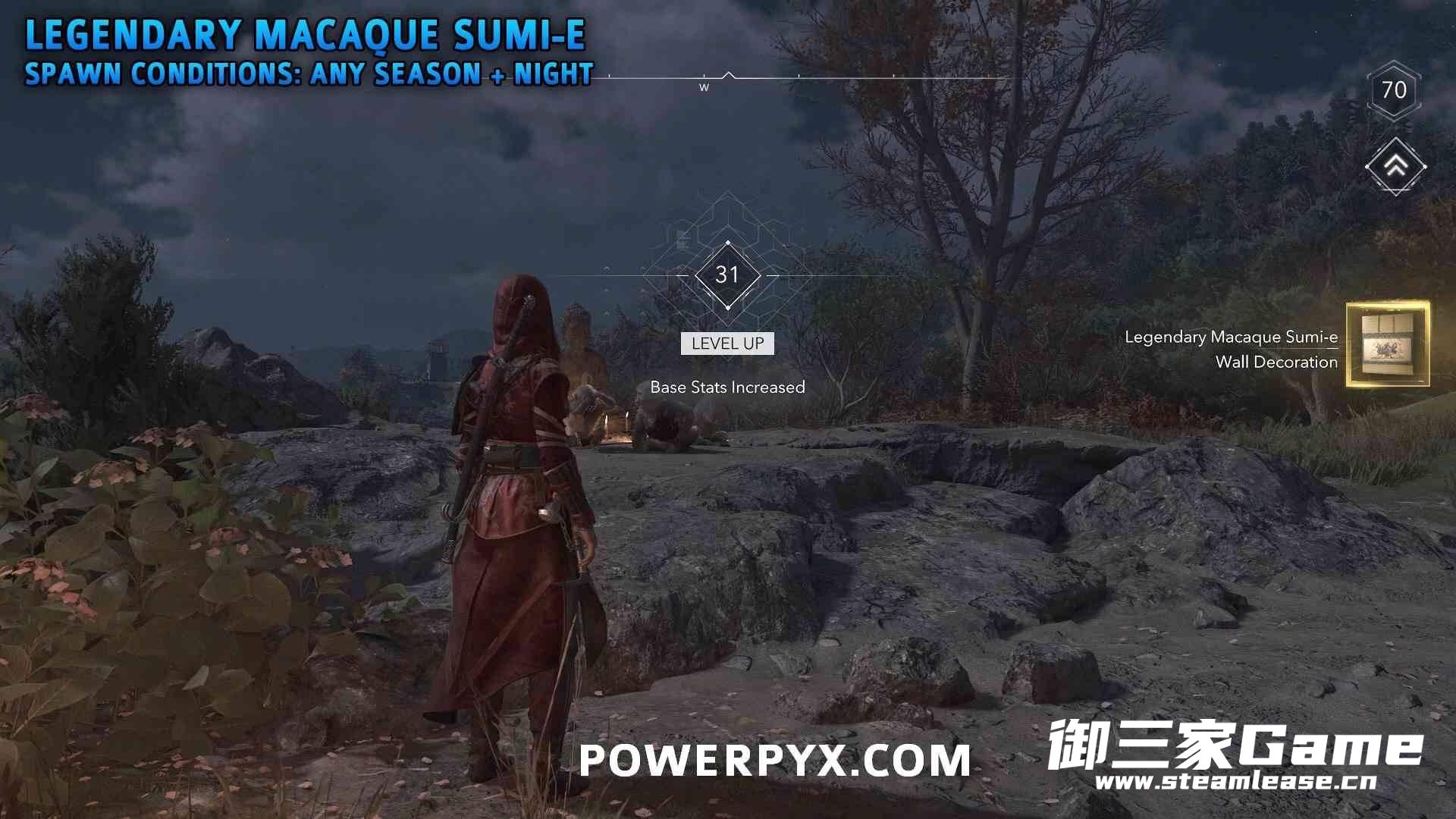 注意,即使符合季节和时间条件,传奇动物也只有大约35%的刷新概率,如果到达位置后没有出现,可以远离至少200米再返回刷新区域,重复这个步骤直到刷出传奇墨绘的动物。快速传送也可以刷新区域,但如果临近昼夜交替(例如黄昏/黎明),可能会无法刷新,建议等待至游戏内第二天。
