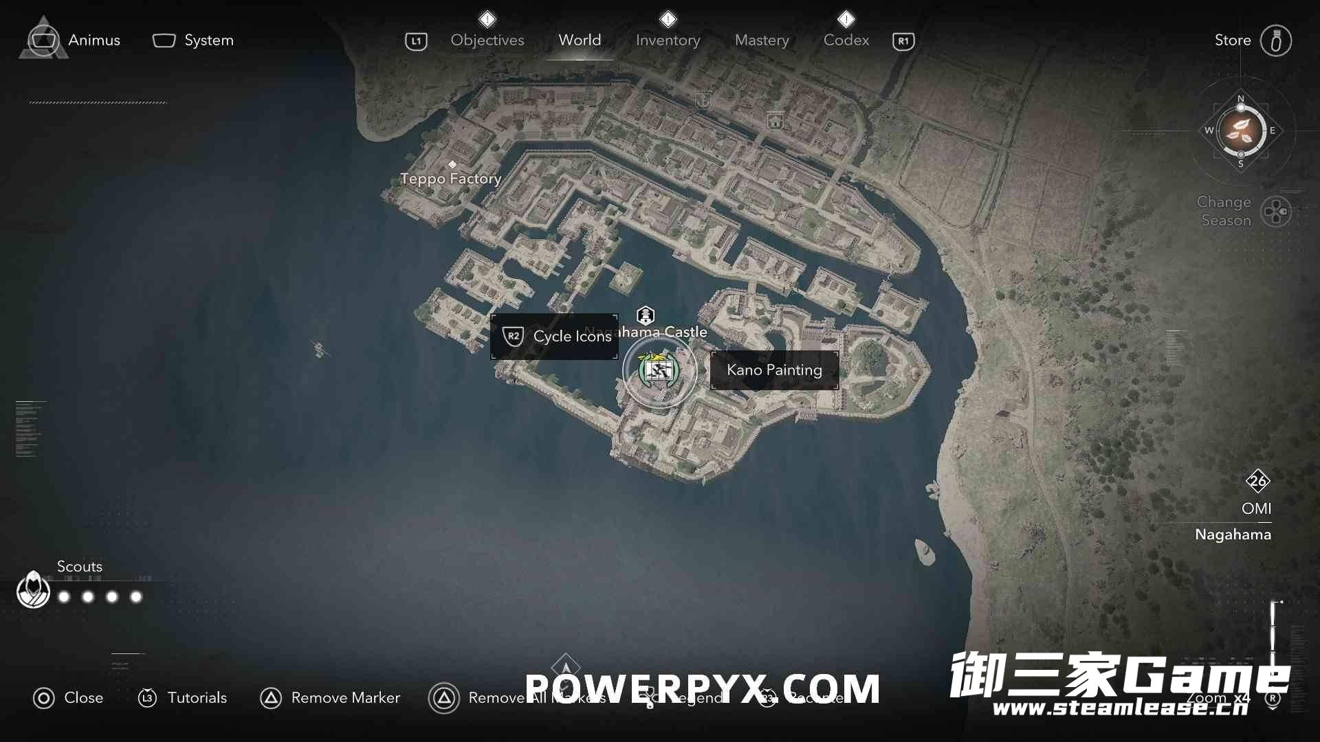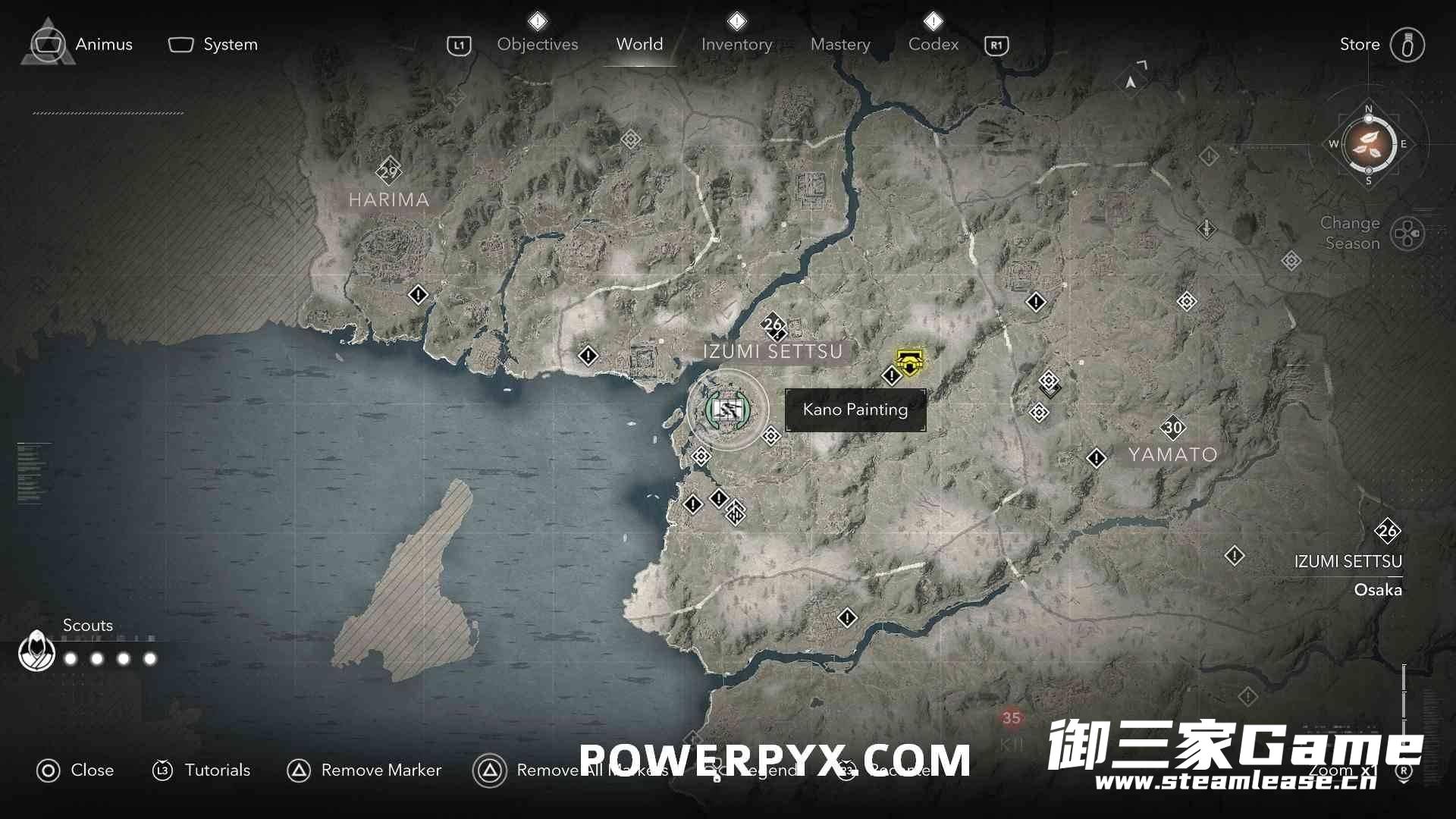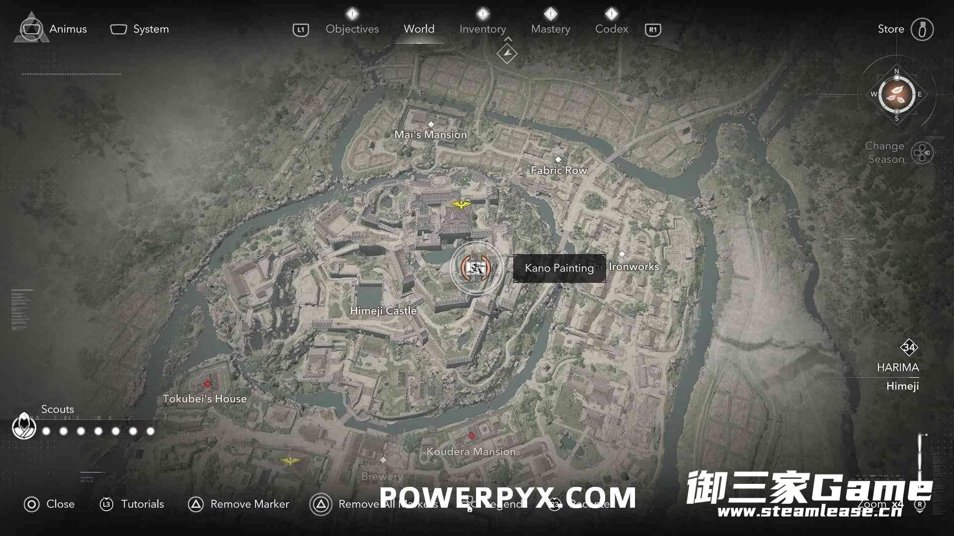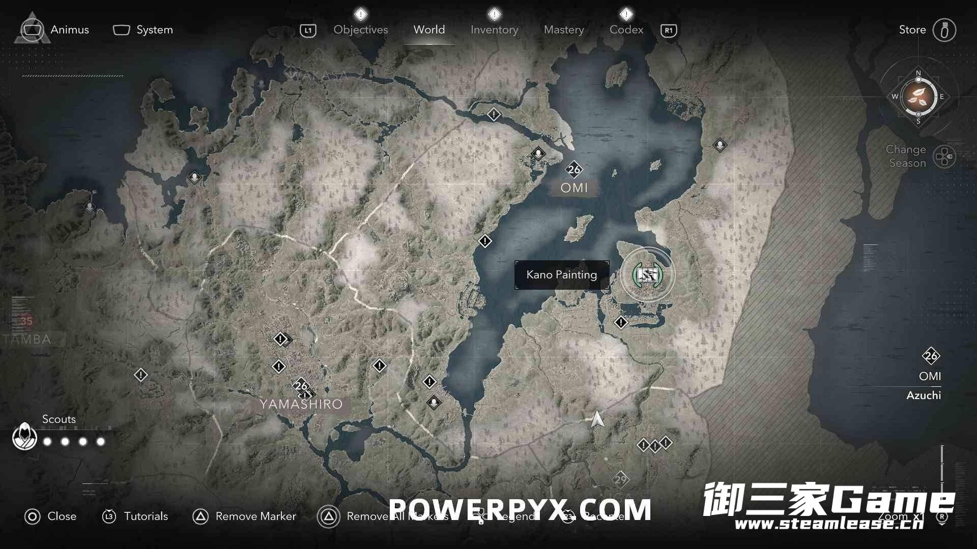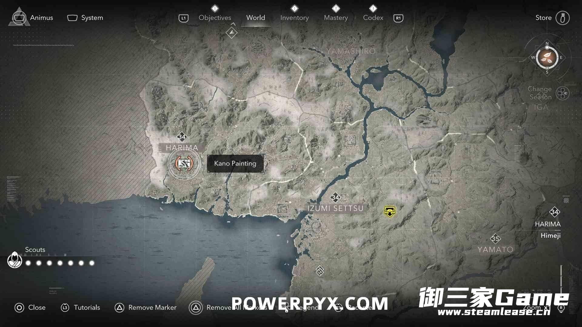 狩野派画作是山城支线任务艺术收藏家所需的任务道具,也是本作中的收集要素之一。此任务会跟随主线剧情推进自动触发,并且会在地图上显示“!”标记。狩野派画作可以在城池内找到,完成所有城的探索时可以自动获得。角色靠近狩野派画作所在位置时地图上会出现一个白色的画作图标标记,只有在地图完全放大时才会显示,也可以按触摸板在地图上筛选显示。