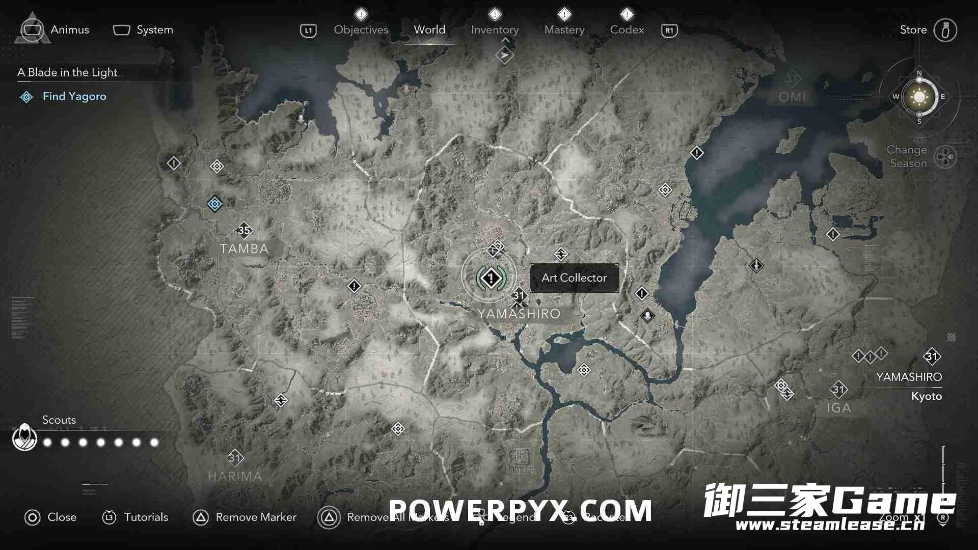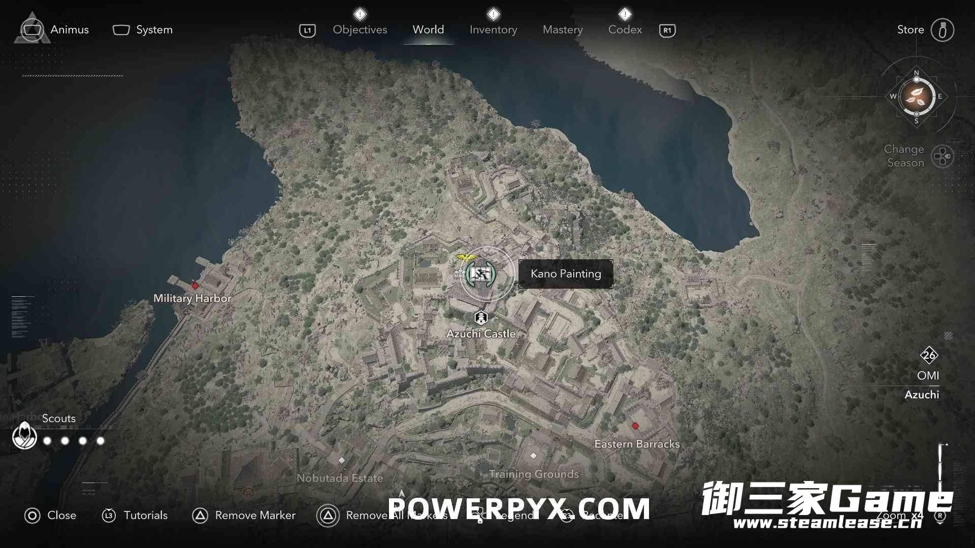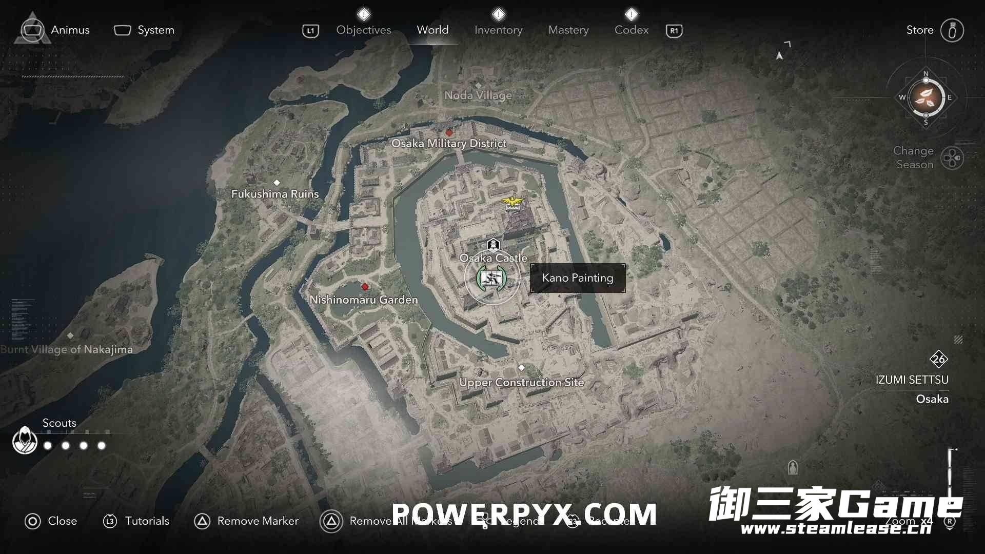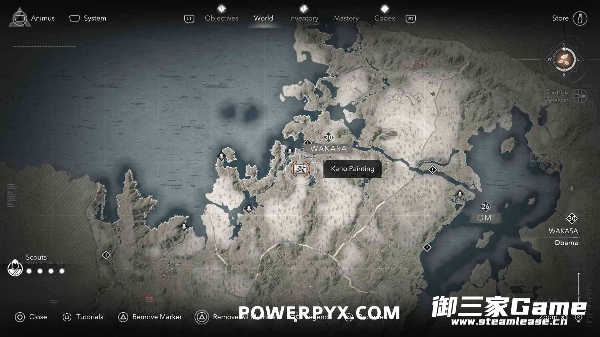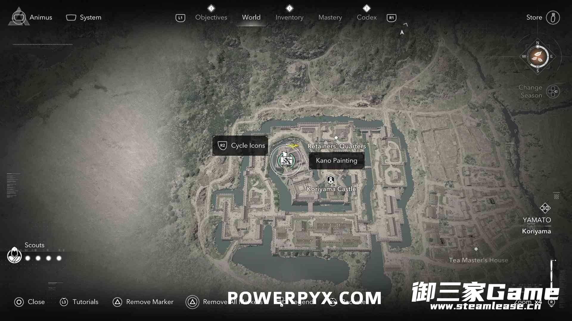 狩野派画作是山城支线任务艺术收藏家所需的任务道具,也是本作中的收集要素之一。此任务会跟随主线剧情推进自动触发,并且会在地图上显示“!”标记。狩野派画作可以在城池内找到,完成所有城的探索时可以自动获得。角色靠近狩野派画作所在位置时地图上会出现一个白色的画作图标标记,只有在地图完全放大时才会显示,也可以按触摸板在地图上筛选显示。