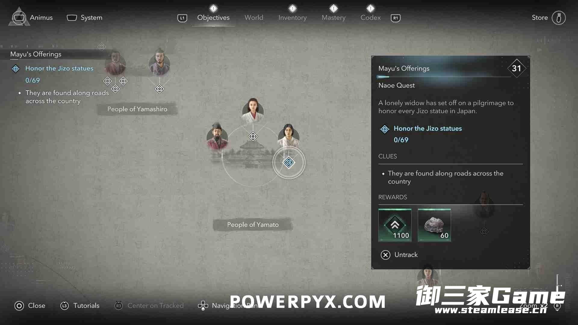 地藏菩萨像是大和支线任务所需的任务道具,总共需要收集69尊。在地图上以白色的地藏像图标显示,只有在完全放大地图时才会出现。与其他收集要素不同的是,地藏像的位置不会在地图上显示“?”标记,但已经找到的地藏像可以按触摸板在地图上筛选显示。