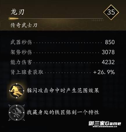《刺客信条影》中有着许多传说武器,龙刃就是其中之一,那么龙刃的武器数据是怎样的呢?还不了解的小伙伴下面请看为大家带来的《刺客信条影》龙刃武器外观与数据一览,希望对大家有用。