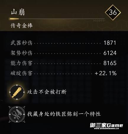 《刺客信条影》山崩是游戏中的一把传奇金棒,那么这把武器的数据及效果是怎样的呢?下面请看为大家带来的《刺客信条影》山崩武器外观与数据一览,希望可以帮助到大家。