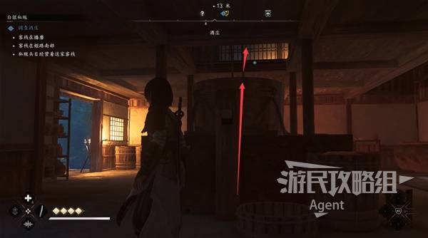 在酒庄调查私贩头目时,需要从大酒缸爬上去。有点难爬,需要多试试。