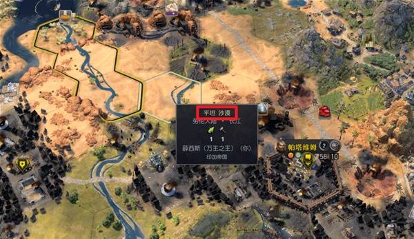 其次是地貌系统,地貌分为平坦、崎岖、湿地与植被四种,生态系统和地貌会共同组合成一个完整的地块,如下图示例:生态群系为沙漠而地貌为平坦的格子。