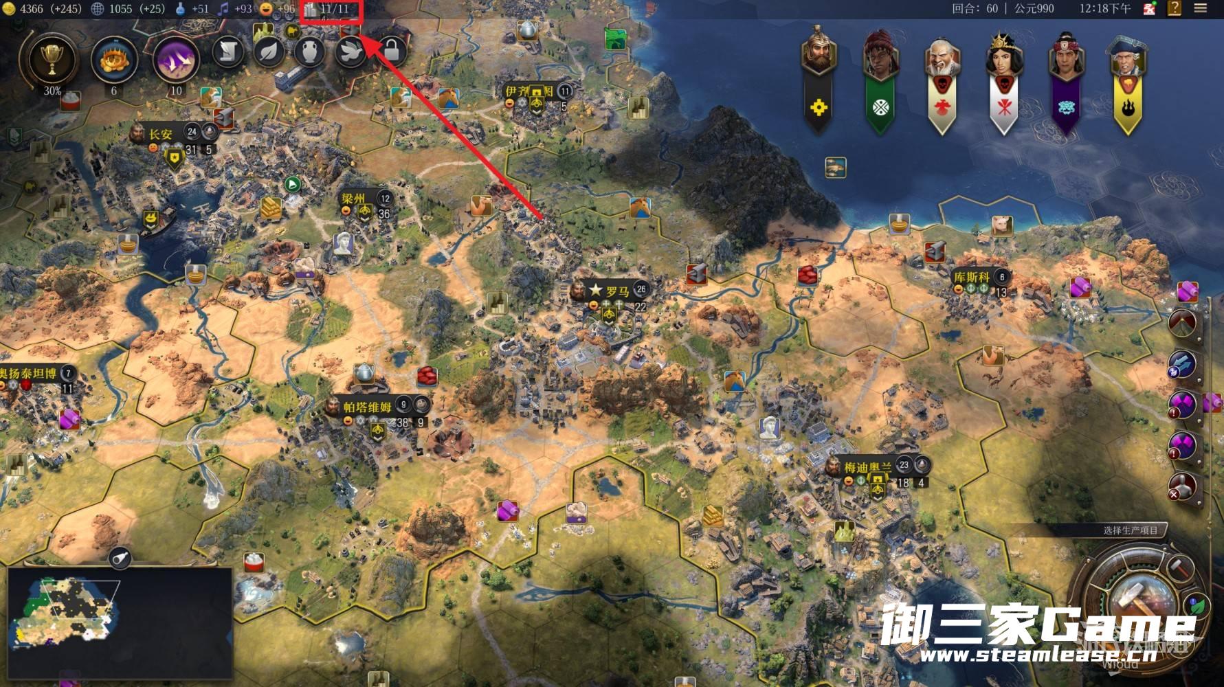 这样你就可以随心所欲地建造新城市,要查看你当前的定居点数量以及定居点上限,可以直接看屏幕左上角红框所示位置。