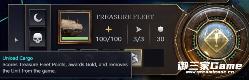 选择“卸载货物”图标,你将获得1点宝藏舰队点数和150枚金币。