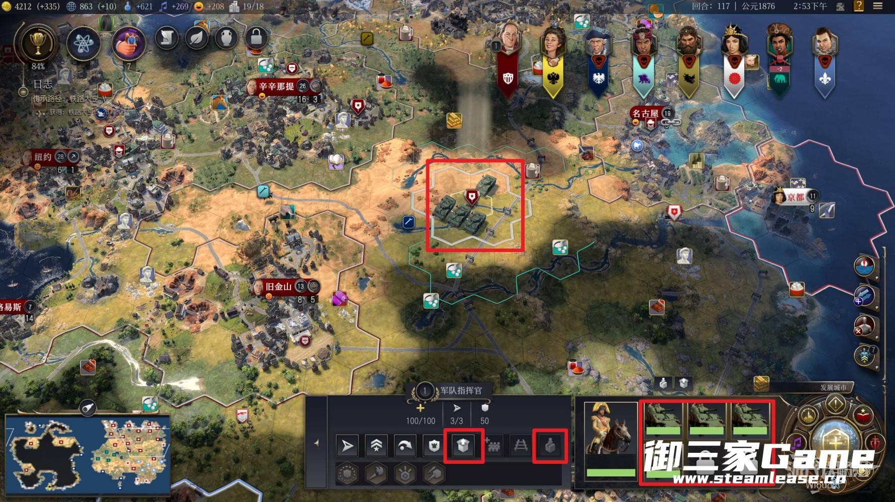 让所有军事单位集结指挥官麾下的好处是,不用在一点一点移动多个单位了,直接操控指挥官走过去能方便许多,而且指挥官可以一次性操控数个单位同时攻击,享受独特的指挥官伤害加成。