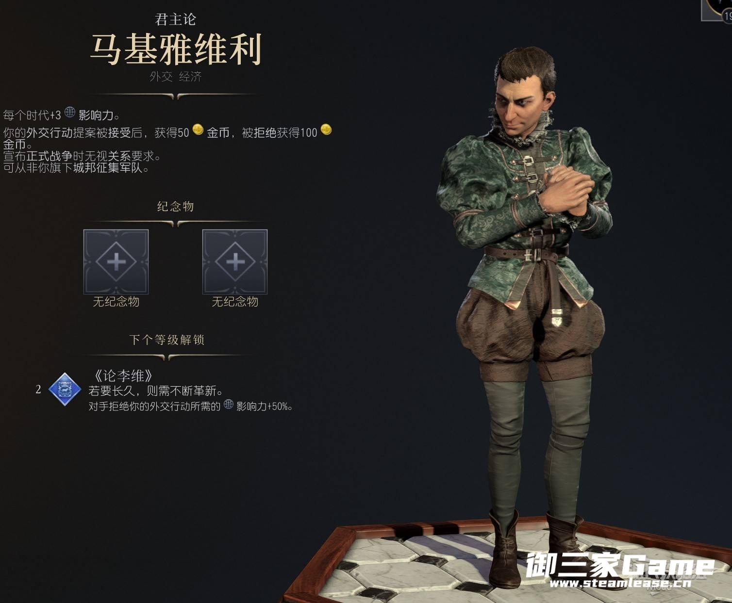 马基雅维利是一位有趣的领袖,他希望积累大量影响力并将其转化为黄金。当他的外交行动被接受时,能获得少量黄金;而当外交行动被拒绝时,获得的黄金更多。