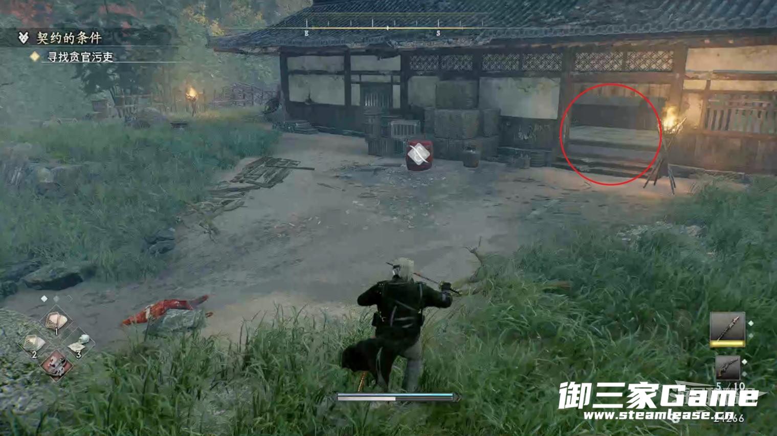 来到目标地点可以看到一个大房子和一群巡逻的敌人,将路上的敌人全部干掉,贪官就在入口正前方的房间。
