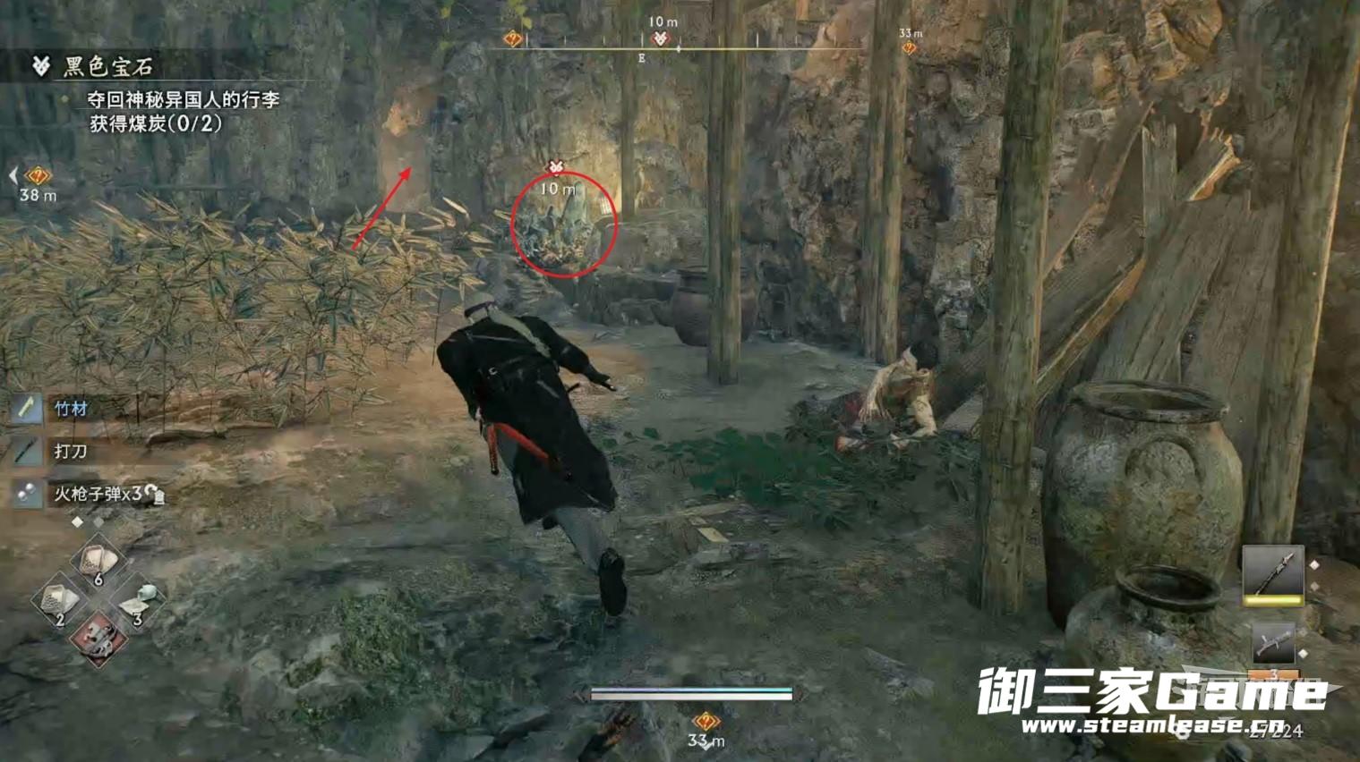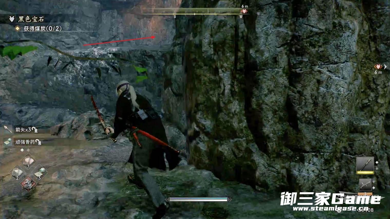 进入洞穴后清理掉入口处的两个敌人,在右侧岩壁旁边可以采集到一个煤炭碎片。