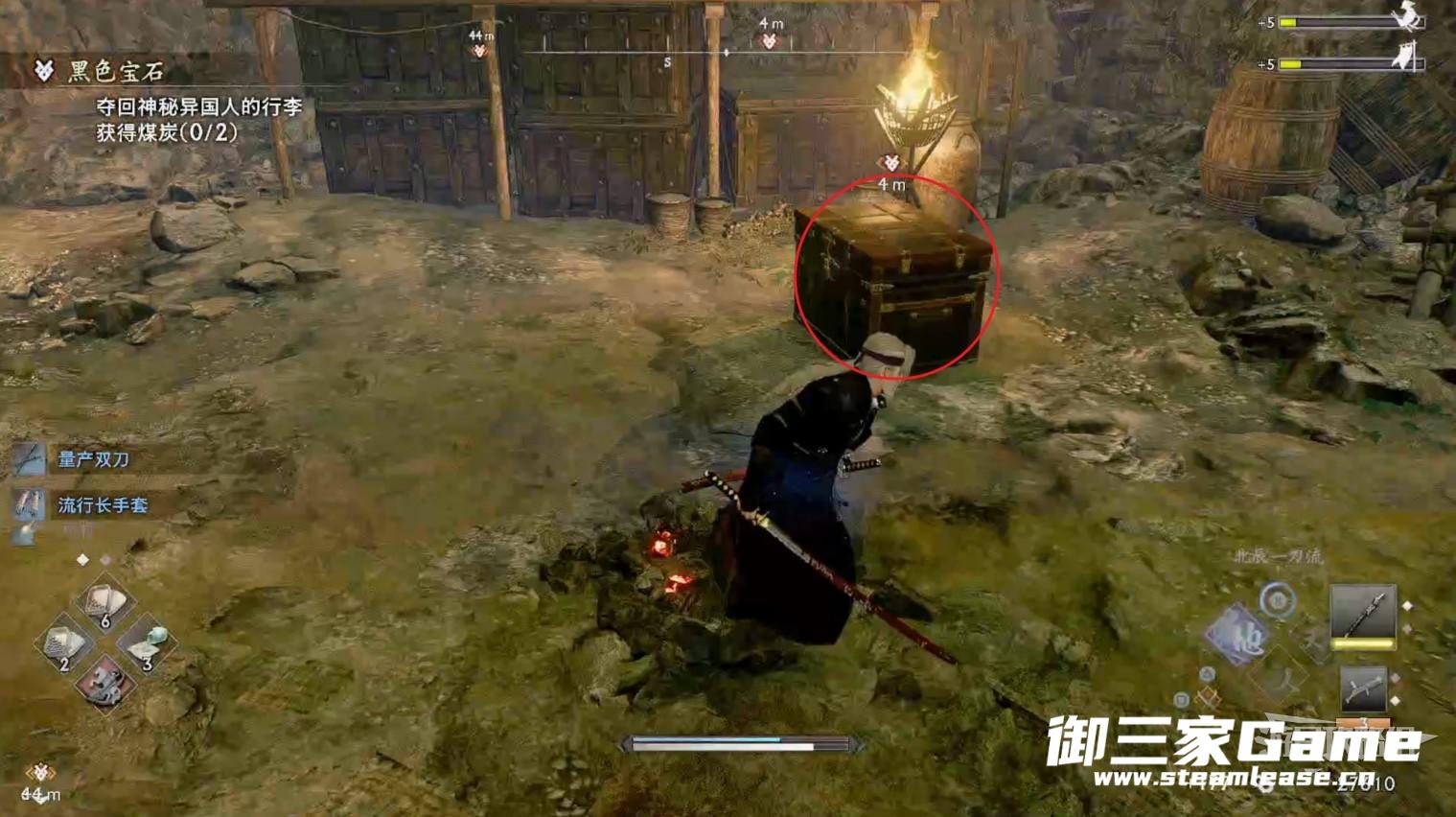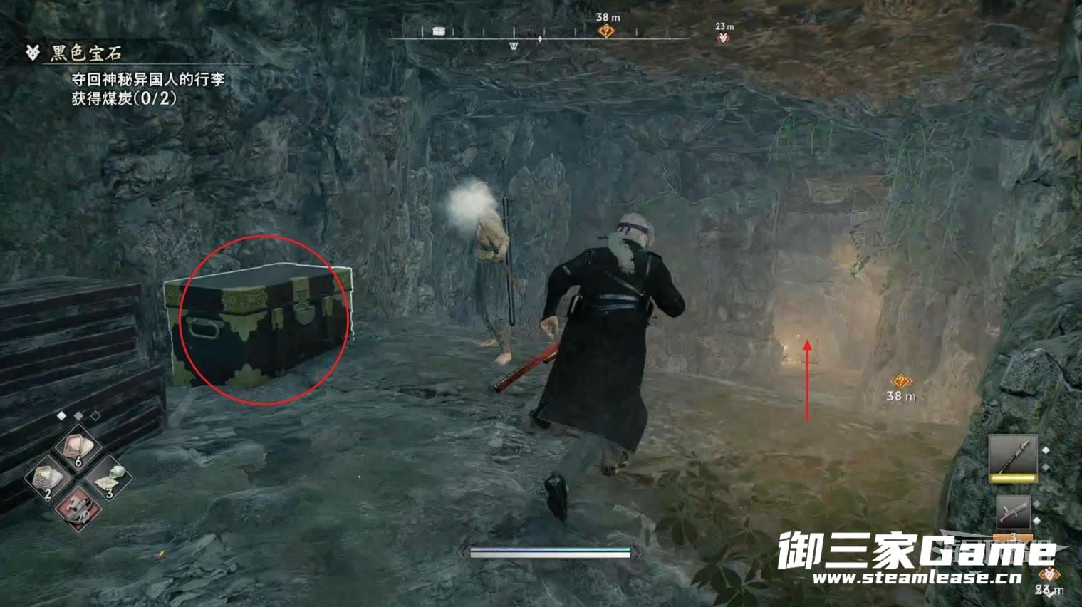 这里分布有一群敌人,清理完毕打开旁边的箱子可以获得外国人的行李。