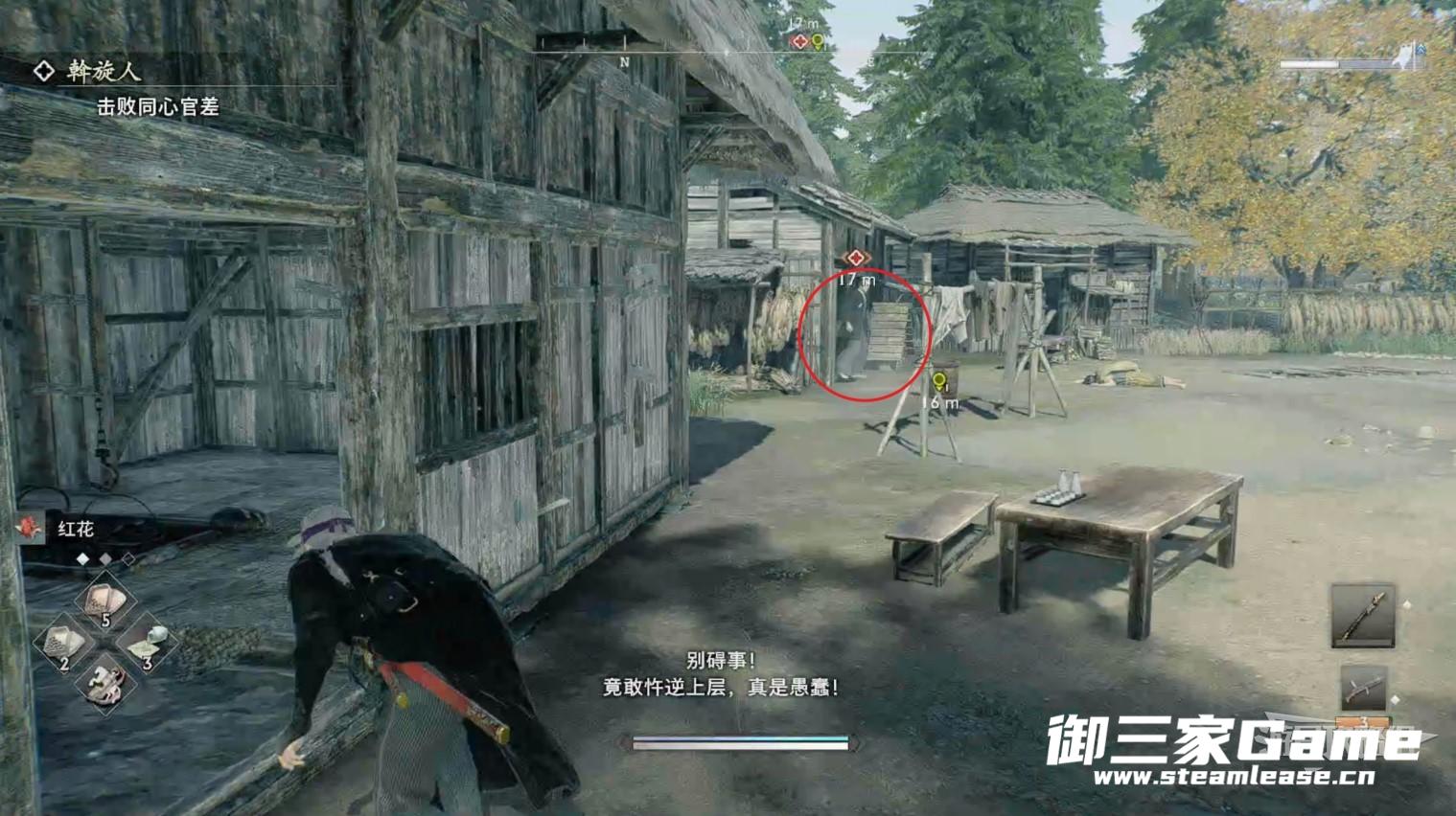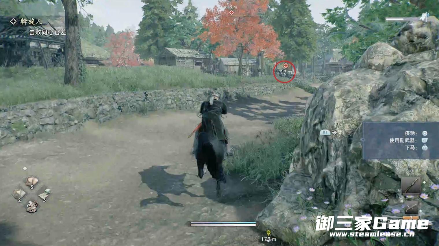 骑马追逐目标,注意不要跟丢了,他在骑行到系统指定位置会下马,此处有4个同心官差需要击败。
