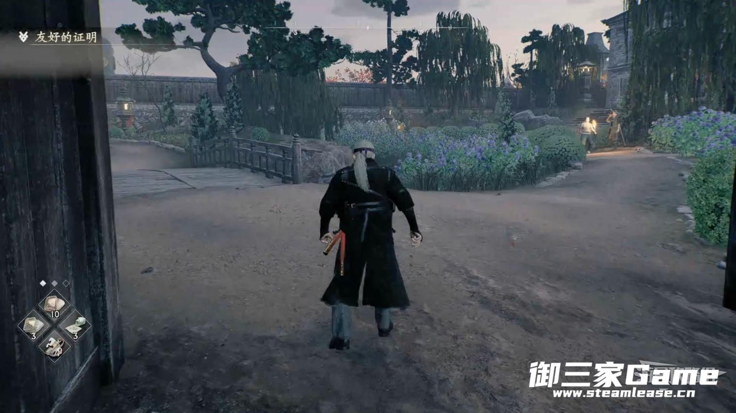 对话中得知NPC想让你阻止一群攘夷武士来让交易顺利进行。