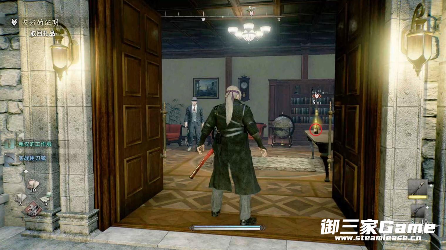 到达洋馆发现有一群巡逻的武士,将其全部干掉进入洋馆建筑。