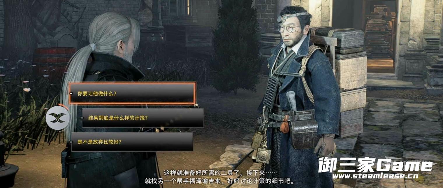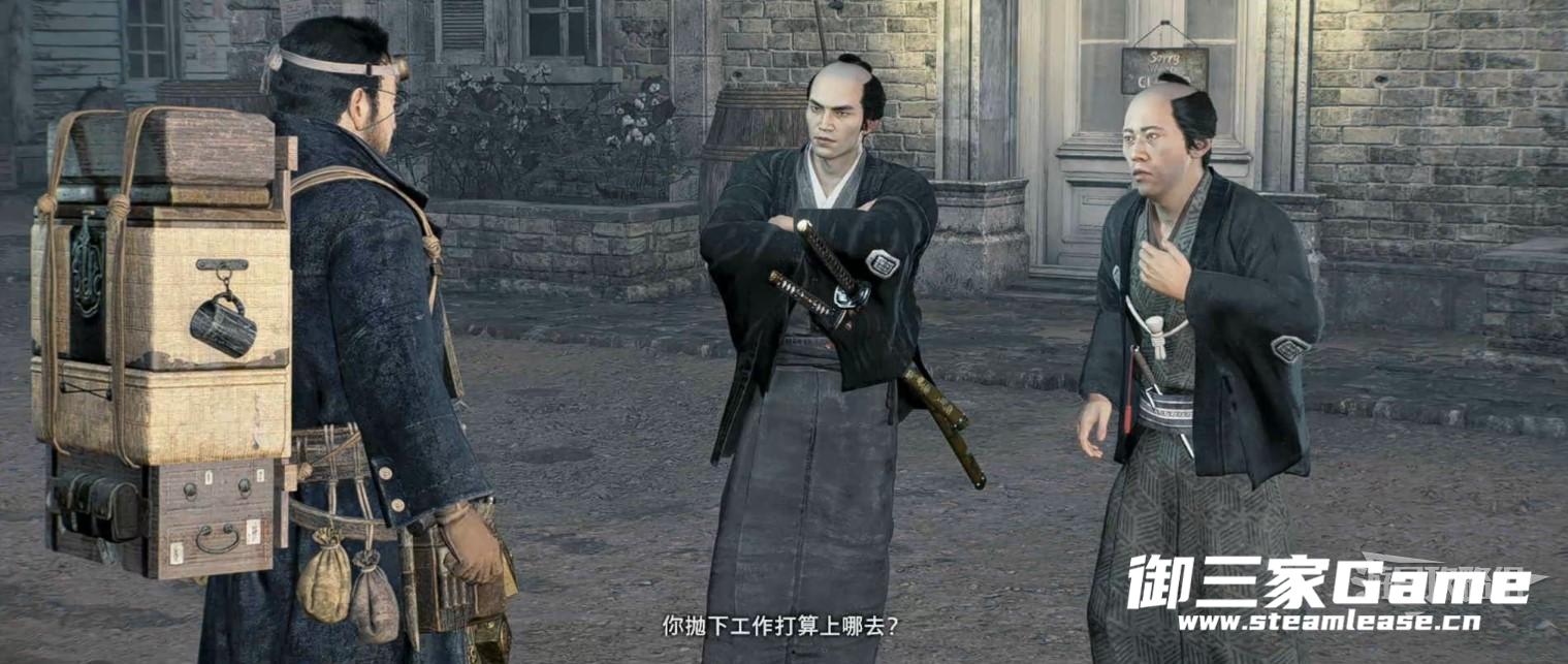 对话结束正要与饭冢出门前往下一个任务地点时,两个幕府的人挡在了门口,直接选择打到他们即可。