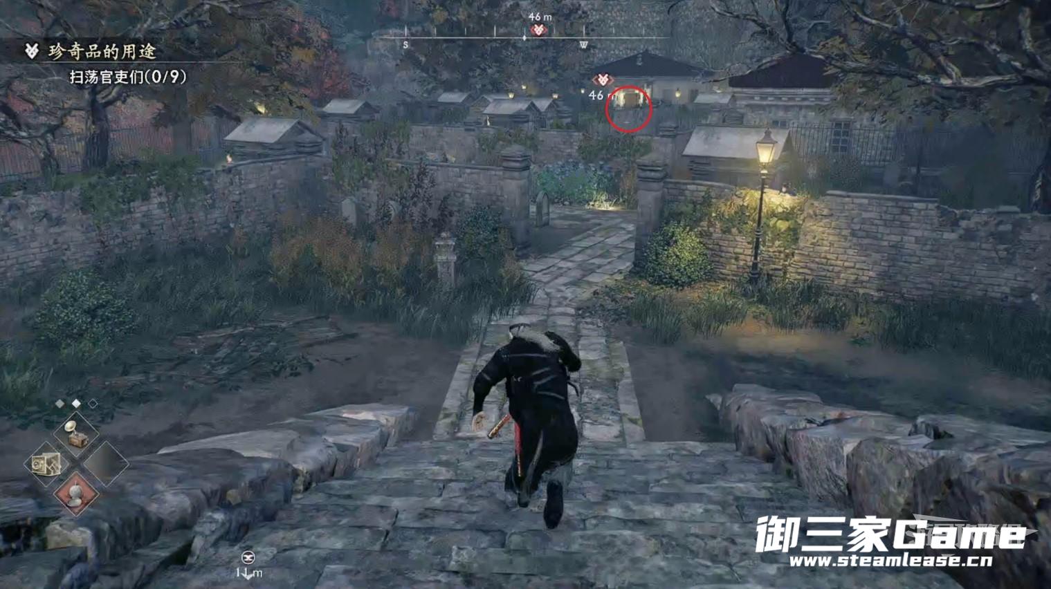 沿着刚刚上来的楼梯往下走,前方的区域会有九个官吏巡逻,战斗强度不高直接正面硬刚即可。