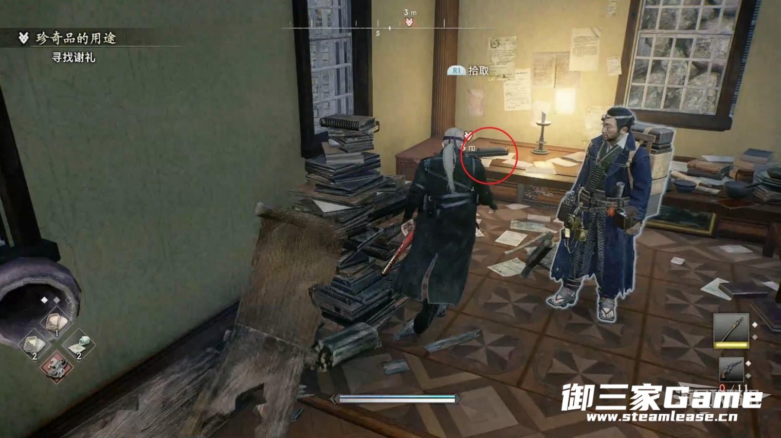 将所有敌人击败后饭冢会来到下图所示的房间中,跟着饭冢一块进去。