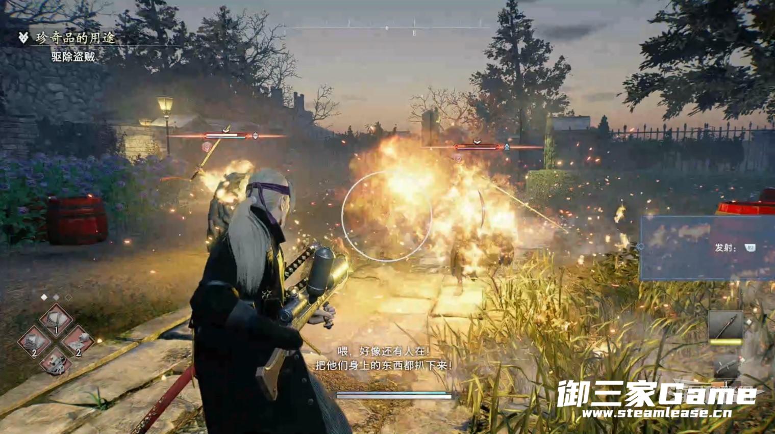 装备捕火方走出房间,会有一大群敌人冲过来,使用捕火方一一焚烧即可。