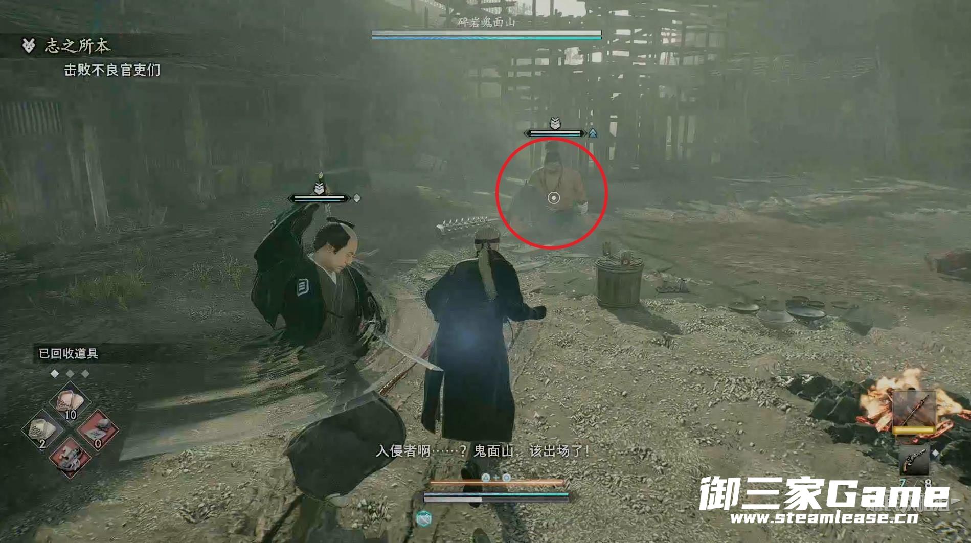 发现以前在监狱打过的碎岩鬼面山在这里,攻击方式与之前一样,将这里的敌人击败,会将我们传送到艺伎的位置。